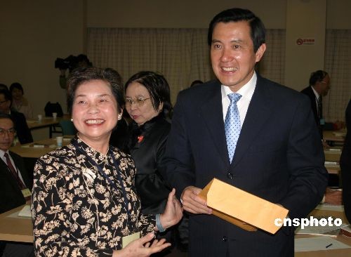 中國國民黨臺(tái)灣地區(qū)領(lǐng)導(dǎo)人候選人馬英九(中)出席會(huì)議并發(fā)表講話。