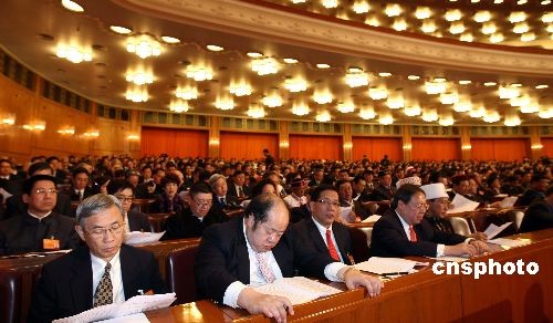 3月3日下午,全國(guó)政協(xié)十一屆一次會(huì)議在北京人民大會(huì)堂開(kāi)幕,圖為來(lái)自香港特區(qū)的委員在開(kāi)幕會(huì)上。中新社發(fā) 盛佳鵬 攝