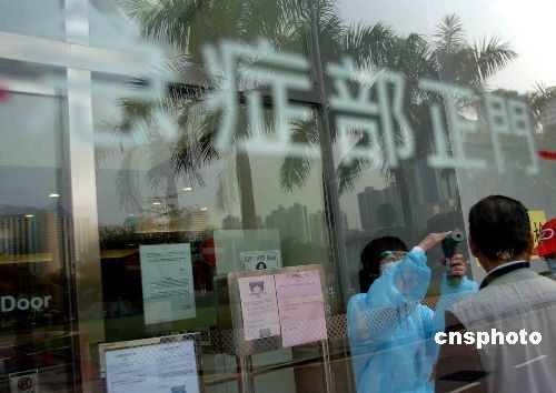 三月十一日,香港屯門(mén)醫(yī)院為進(jìn)入急癥室者事前須探熱及洗手消毒。屯門(mén)醫(yī)院近日成為流行性感冒壓力下的重災(zāi)區(qū),因應(yīng)求診人數(shù)增加及流感高峰期,在急癥室實(shí)施發(fā)燒病人分流措施,預(yù)防流感擴(kuò)散。中新社發(fā) 譚達(dá)明 攝