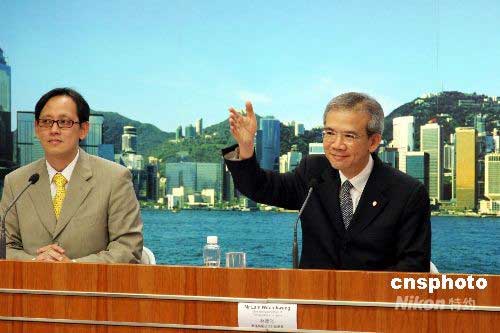 香港奧運(yùn)馬術(shù)公司行政總裁林煥光(右)和香港中旅社發(fā)言人吳熹安六月十日舉行新聞簡報會,宣布香港再獲北京奧組委分配六萬張奧運(yùn)馬術(shù)門票,將于六月十二日開售。香港中旅社將受委托作為門票銷售的票務(wù)代理。中新社發(fā) 黎金良 攝