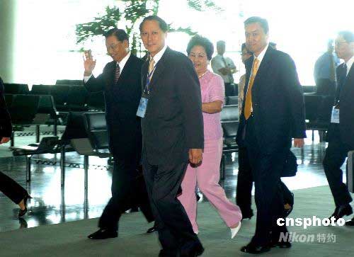 六月十一日,江丙坤董事長(前)率臺灣海灣交流基金會(huì)抵達(dá)澳門國際機(jī)場,作短暫停留后轉(zhuǎn)機(jī)赴北京與海協(xié)會(huì)進(jìn)行中斷近十年的兩會(huì)協(xié)商會(huì)談。中新社發(fā) 史利 攝