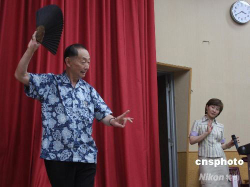 京劇大師梅蘭芳之子梅葆玖(左)第三次訪問臺(tái)灣,六月二十一日應(yīng)邀在臺(tái)北科技大學(xué)演講時(shí),應(yīng)京劇戲迷要求表演《霸王別姬》片斷,其臺(tái)灣女弟子魏海敏(右)作陪并在一旁認(rèn)真學(xué)習(xí)揣摩。中新社發(fā) 耿軍 攝