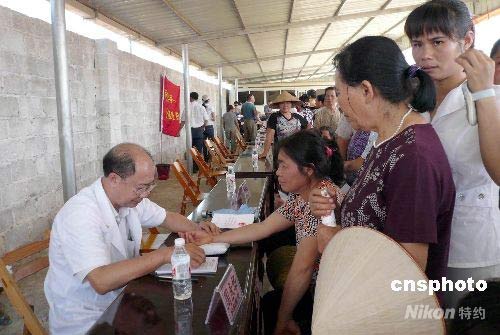 7月19日,國務(wù)院僑辦、廣西壯族自治區(qū)僑辦2008“僑愛工程”醫(yī)療義診暨僑法宣傳進(jìn)“僑場”活動(dòng)啟動(dòng)儀式在廣西崇左市扶綏縣渠黎華僑林場舉行。國務(wù)院僑辦、廣西自治區(qū)僑辦等官員出席儀式,隨即來自南寧的“送溫暖”義診隊(duì)為歸僑僑眷展開展義診活動(dòng)。中新社發(fā) 羅婷 攝