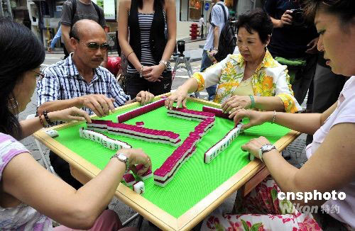 九月五日,首屆“世界麻將大賽”冠軍許宗澧在記者會上與其它選手比較高下。第二屆“世界麻將大賽”將于九月十九日至二十一日在澳門舉行,提供麻將競賽有史以來的最高額獎金一百萬美元。中新社發 譚達明 攝