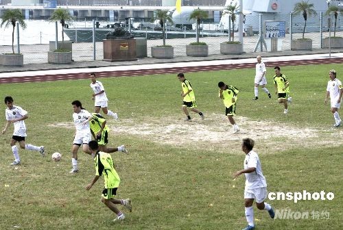 九月十五日,香港各界中秋探訪團在董趙洪娉女士和曾鮑笑薇女士的率領(lǐng)下,由香港工商界、演藝界人士等組成,中央駐港機構(gòu)領(lǐng)導也參加了這一活動。圖為駐港部隊足球隊與香港演藝界明星足球隊舉行友誼賽。中新社發(fā) 張勤 攝