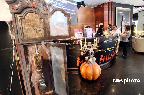 一年一度的萬圣節即將到來,在香港鬧市街頭甚至酒店商場,到處可見擺設中西文化交匯的趣怪裝飾,商家借西方節日,營造熱鬧氣氛,招徠顧客。中新社發 洪少葵 攝