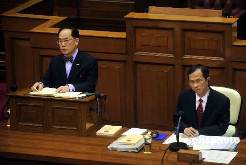 十月十六日,香港行政長官曾蔭權(quán),下午出席立法會答問大會,答覆議員向其提出的質(zhì)詢。中新社發(fā) 譚達(dá)明 攝