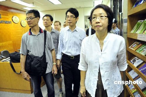 十月二十一日,香港二十多名泰林電器的外判技工,早上與特區政府勞工處長謝凌潔貞會面,希望追討欠薪及工程費,估計涉款一百五十萬港元。中新社發 譚達明 攝