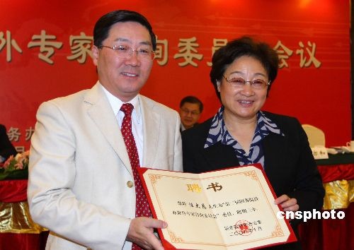 10月27日,第二屆國(guó)務(wù)院僑辦海外專家咨詢委員會(huì)會(huì)議在北京舉行。國(guó)務(wù)院僑務(wù)辦公室主任李海峰向新任的38名海外專家咨詢委員會(huì)委員頒發(fā)聘書。中新社發(fā) 廖文靜 攝