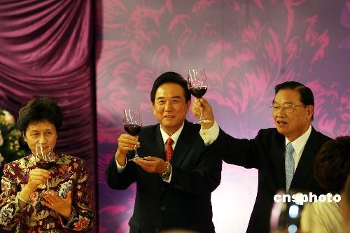 十月一月三日晚,臺(tái)灣;鶗(huì)董事長江丙坤在101大樓設(shè)宴,為中午抵臺(tái)的海協(xié)會(huì)會(huì)長陳云林洗塵。中新社發(fā) 洪少葵 攝