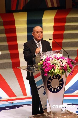 11月22日,中國國民黨第十七次全代會臨時會議在臺北“國父紀念館”舉行。圖為會議中,國民黨主席吳伯雄以“團結奮起,戰勝逆境”為題致詞。他表示,最近發生全球金融海嘯,國民黨要做執政團隊的后盾,支持他們突破困境。中新社發 劉舒凌 攝