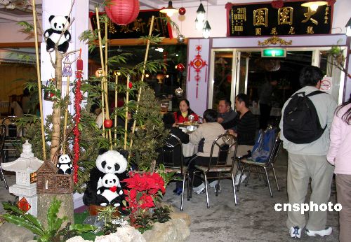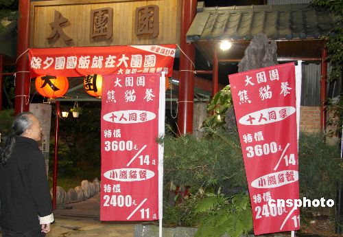 隨著大陸贈臺大熊貓團團、圓圓已經來臺,臺灣臺北縣深坑鄉出現一家“大團圓”飯店。元旦期間,該店別出心裁推出的“熊貓餐”吸引顧客。中新社發 陳立宇 攝
