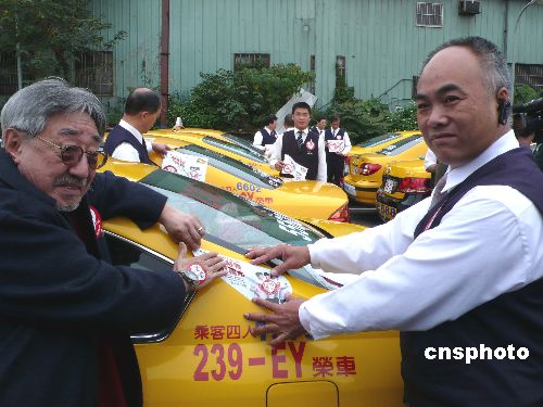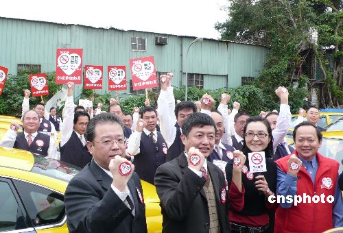 1月4日,“無煙臺灣,Yes We Can!” 數十名臺灣計程車司機共同誓師響應“煙害防治法”,在車體上張貼明顯的禁煙標識。距離臺灣1月11日正式實行“煙害防治法”僅剩一周時間,臺灣的禁煙宣導活動也進入總動員。中新社發 路梅 攝