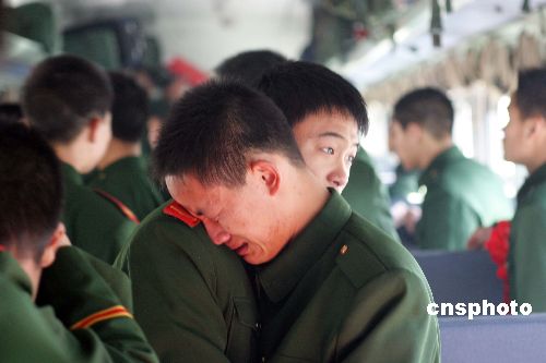 11月26日中午,駐守在中朝邊境100多名四川籍邊防退伍老兵返鄉。中新社發 陳浩浩 攝