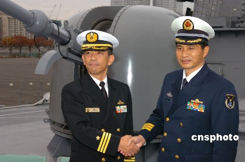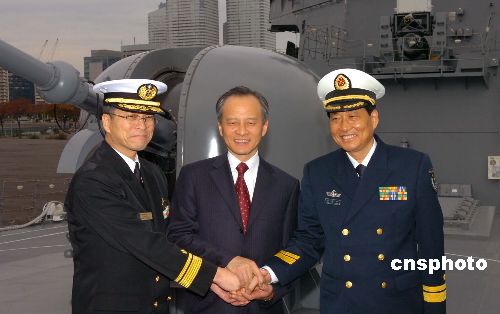 11月28日下午,正在日本進行正式友好訪問的中國海軍“深圳號”官兵開始與日本海上自衛隊進行交流活動。中新社發 滕劍峰 攝