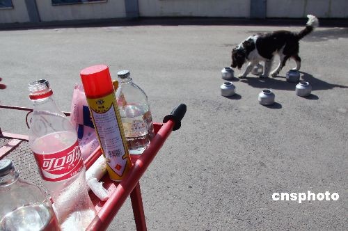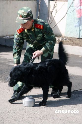 3月19日,武警戰(zhàn)士在對(duì)消防搜救犬進(jìn)行訓(xùn)練。沈陽(yáng)市消防支隊(duì)特勤三大隊(duì)的消防搜救犬堪稱中國(guó)工作犬中的“特種兵”,很多搜救犬具備識(shí)別20多種氣味的能力,對(duì)機(jī)油、汽油、柴油、信那水等常見(jiàn)的易燃易爆液體及丙烷等可燃?xì)怏w的氣味的識(shí)別率達(dá)到100%。它們既可作為尋找鑒別爆炸源及燃燒源的搜救犬,又完全可以勝任機(jī)場(chǎng)、車(chē)站等重要地區(qū)的安檢工作犬。中新社發(fā) 趙敬東 攝