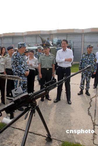 10月15日上午,新加坡國防部長張志賢在廣東省湛江市觀看操作中國海軍陸戰(zhàn)隊輕武器。當(dāng)天,張志賢在海軍南海艦隊副參謀長幺志樓少將的陪同下,來到中國海軍陸戰(zhàn)隊某旅營區(qū)參觀訪問,了解了部隊基本建設(shè)情況,并參觀了部隊各式武器。張志賢表示,通過訪問加深了對中國海軍陸戰(zhàn)隊的了解,期待新加坡軍隊同中國軍隊進(jìn)一步增進(jìn)交流和合作。中新社發(fā) 李滿青 攝