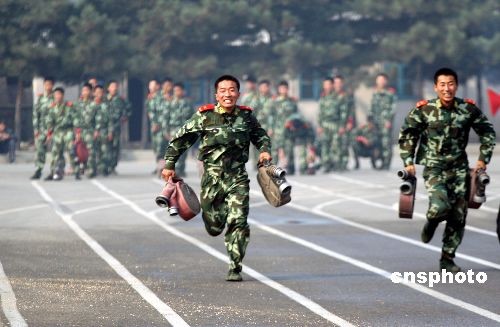 2008年10月22日,沈陽市公安局消防支隊在消防訓(xùn)練基地隆重舉行“學啟工,練精兵”比武競賽活動,活動中廣大消防官兵通過體能、技能、戰(zhàn)術(shù)、合成及新裝備演示等幾項基本功的對決,最終決出誰是“練兵武狀元”。中新社發(fā) 趙敬東 攝