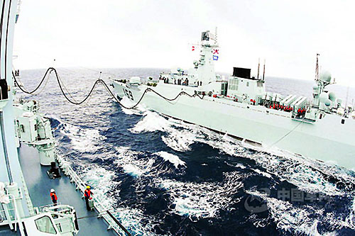 海軍赴索馬里海域護航編隊進行海上補給演練