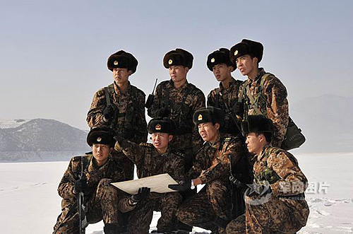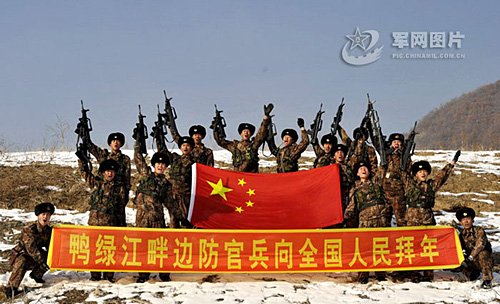 圖:鴨綠江畔邊防官兵向全國(guó)人民拜年