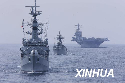 3月11日,“和平-09”多國聯合軍演海上實兵演習繼續實施,陣勢壯觀的海上閱兵將演習推向高潮。查春明 攝