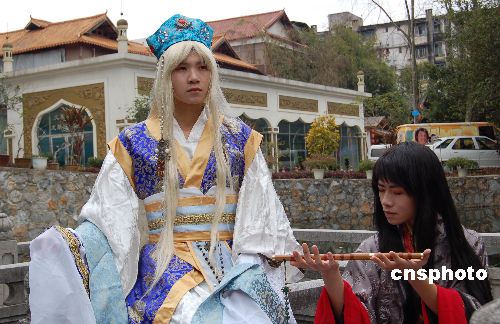2月12日是農(nóng)歷大年初六,廣西南寧幾名高中學(xué)生在當(dāng)?shù)氐拿褡逦奈镌吠嫫餭osplay(動(dòng)漫真人秀),體驗(yàn)另類春節(jié)的感覺。據(jù)悉,自一九九七年cosplay傳入中國(guó)以來,迄今全國(guó)有cos經(jīng)驗(yàn)和參加過cos活動(dòng)的人數(shù)在十萬(wàn)以上。中新社發(fā) 劉萬(wàn)強(qiáng) 攝