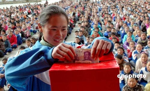 拉薩市中學師生向“3•14”事件受害群眾捐款
