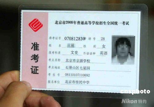 6月3日,北京地區高考準考證下發到學生手中。與往年不同的是,今年的準考證上不僅標注了考場名稱,還打印上了考點的詳細地址,這一人性化的細節將減少粗心考生跑錯考場。中新社發 富田 攝