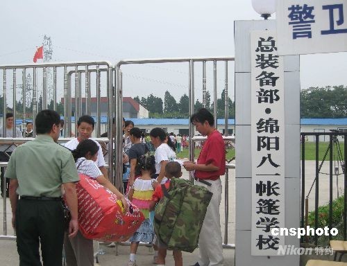 8月20日,在汶川大地震中受損嚴重的四川省綿陽市1000余所中小學全部開學,其中板房學校有612所。圖為北川學生進入由總裝備部出資修建的綿陽八一帳蓬學校。據介紹,該學校將接納北川羌族自治縣曲山小學和劉漢希望小學的九百余名學生。中新社發 霍潺 攝