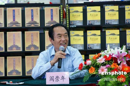 2008年10月5日下午,北京滿學會會長、百家講壇主講之一、著名歷史學家閻崇年來到無錫新華書店與讀者見面。見面會上,他向讀者詳細介紹了由他創作的《明亡清興六十年》、《袁崇煥傳》、《康熙大帝》等書籍,并就歷史愛好者和廣大熱心讀者關心的話題進行了互動交流。中新社發 李 杰 攝