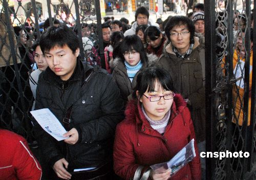 2009年1月10日,安徽省51860名考生走進考場參加2009年全國碩士研究生入學考試,報考人數比上年增加1876人。據悉,躲避就業壓力是考研大軍只增不減的一個重要原因。中新社發 從啟 攝