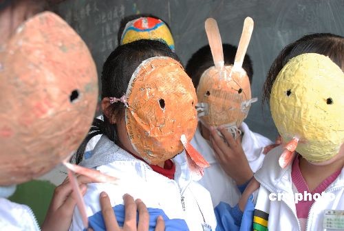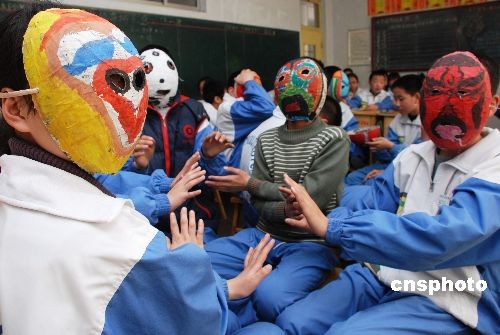 3月16日,山東鄒平縣實驗中學(xué)的學(xué)生用自制的面具表演校園生活自編劇。學(xué)生們用舊報紙在充氣氣球上經(jīng)過糊紙、描彩、勾畫、裁切等步驟自制個性面具,并進(jìn)行展示評比,以小組為單位,以學(xué)生身邊所見所聞為表演題材自編短劇在課堂上展演。據(jù)悉,該校成立機器人、繪畫、舞蹈、表演、攝影等各種創(chuàng)新活動小組,以培養(yǎng)學(xué)生動手能力和創(chuàng)新能力。中新社發(fā) 董乃德 攝