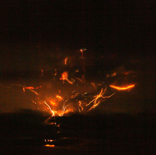 “此閃電強度比在美國中西部雷暴中所看到的閃電還要強烈。其無線電頻率噪音如此強大且持續不斷,因此生活在火山爆發區域的人根本不能看甚高頻的電視節目!