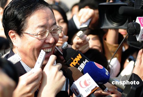 中國共產黨第十七次全國代表大會10月21日上午在北京人民大會堂閉幕。大會選舉產生了新一屆中央委員會和中央紀律檢查委員會。圖為當選新一屆中央委員會委員的央行行長周小川在大會堂外被記者“圍攻”。中新社發 任晨鳴 攝