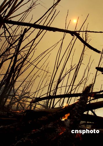 十月二十五日,美國南加州肆虐五天的山火集中在五個地區,當地居民和許多豪宅依然受到煙火威脅,目前已有一百萬災民流離失所。中新社發 賈國榮 攝