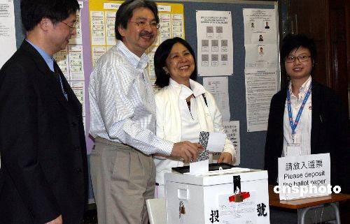 香港區議會選舉舉行 曾蔭權吁市民踴躍投票(圖)