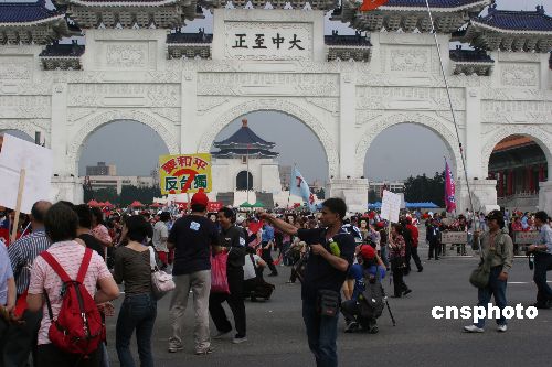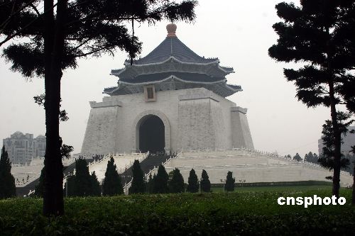 12月6日,臺灣當局已將臺北市標志性建筑“中正紀念堂”的牌匾拆除,將換上“民主紀念館”的新牌匾。中新社發 耿軍 攝
