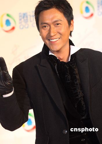 香港藝人馬德鐘黑風衣亮相北京星光大典。