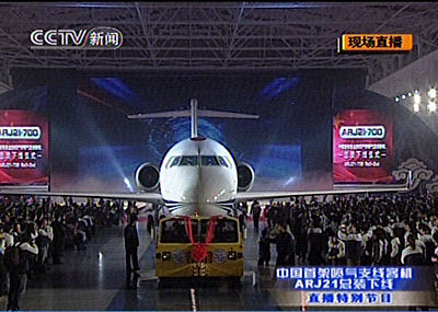 中國新支線飛機ARJ21總裝下線 明年上半年首飛