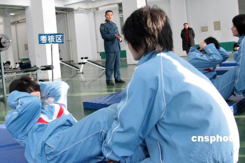 圖為仰臥起坐對女飛學員來說是小兒科。