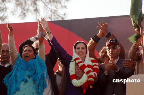12月27日,巴基斯坦前總理貝布托參加集會。幾分鐘后,她遭遇自殺性爆炸襲擊而身亡。中新社發 M0/CNSphoto 攝