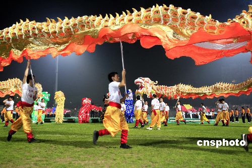 圖為現(xiàn)場(chǎng)龍獅齊武,中華自強(qiáng)之聲不絕于耳。