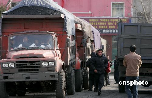 1月29日,運煤的車輛正在河南省洛陽市一供熱站排隊卸車。針對當前大范圍雨雪冰凍災害等給煤電油運造成的嚴重影響,洛陽市緊急協調、部署和落實相關保障工作,確保供電、供暖企業平穩正常運行,確保群眾正常生活秩序和社會和諧穩定。中新社發 張曉理 攝
