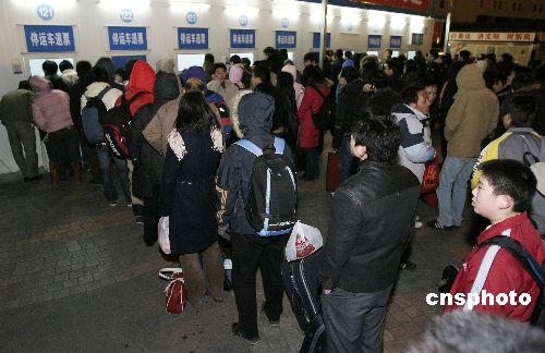 2008年1月29日,受南方惡劣天氣影響,北京西站暫時停售了京廣線株洲以南列車的車票,如旅客選擇放棄旅行,可以全額退票。北京西站已在北廣場121至130窗口,新開辟了10個退票窗口。中新社發 魯谷 攝