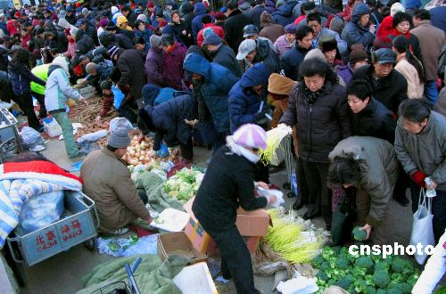 圖:南方雪災影響食品價格 北京早市人頭攢動