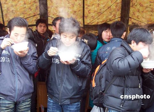 圖:回鄉旅客上海站喝熱粥