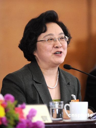 三月六日下午,全國政協十一屆一次會議記者招待會在北京人民大會堂新聞發布廳舉行,主題為“民主黨派中央主席談多黨合作”,中國八個民主黨派中央主席共同出席。圖為臺盟中央主席林文漪。中新社發 廖攀 攝