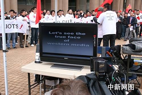 當地時間29日下午,加拿大溫哥華部分中國留學生和華人代表組織集會活動,現場播放錄像揭露部分西方媒體對西藏事件的不公正報道。 中新社記者呂振亞攝