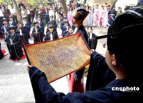 4月6日,來自福建、浙江的三十多名漢服愛好者在福州于山戚公祠舉行閩浙兩省漢服同仁聯合祭奠抗倭民族英雄戚繼光將軍活動。圖為祭奠活動按傳統祭拜禮儀,緬懷民族英雄戚繼光的豐功偉績。中新社發 劉可耕 攝