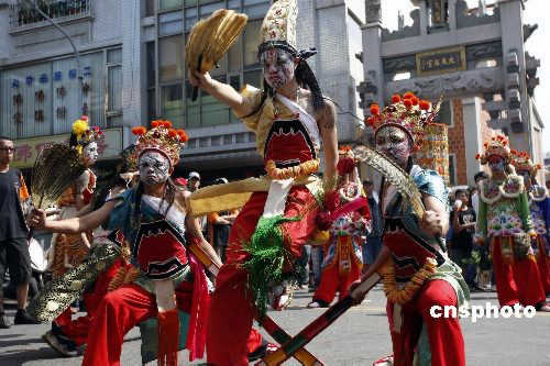 4月6日,臺南媽祖出游祭拜活動場面熱鬧。大天后宮俗稱臺南媽祖廟,建于清康熙23年(公元1684年),原為明寧靖王府邸,是鄭成功之子鄭經為了表示對寧靖王朱由桂禮遇而建。后清將施瑯在寧靖王府內供奉媽祖并改為天后宮進行擴建。大天后宮歷經數次整修,1985年以其歷史與文化地位被列為一級古跡,在臺灣將近400座媽祖廟中,具有尊貴地位,是島內第一座官建媽祖廟,也是唯一列入官方春秋祭典的媽祖廟。中新社發 杜洋 攝